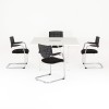 - Mesas equipadas con ruedas para reconfigurar la sala al instante.