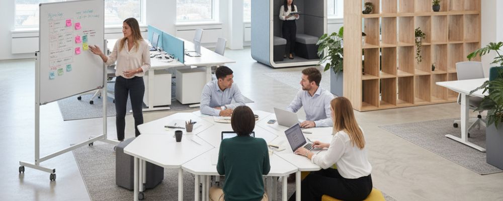 Otro beneficio clave reside en la coherencia con las prácticas organizativas ágiles. Ya se trate de Scrum, Design Thinking o talleres colaborativos, estas metodologías exigen una flexibilidad espacial inmediata. El mobiliario modular hace posible esta adaptación instantánea, ya sea para ampliar la configuración de un proyecto o para reconfigurar rápidamente una sala destinada a un taller intensivo.